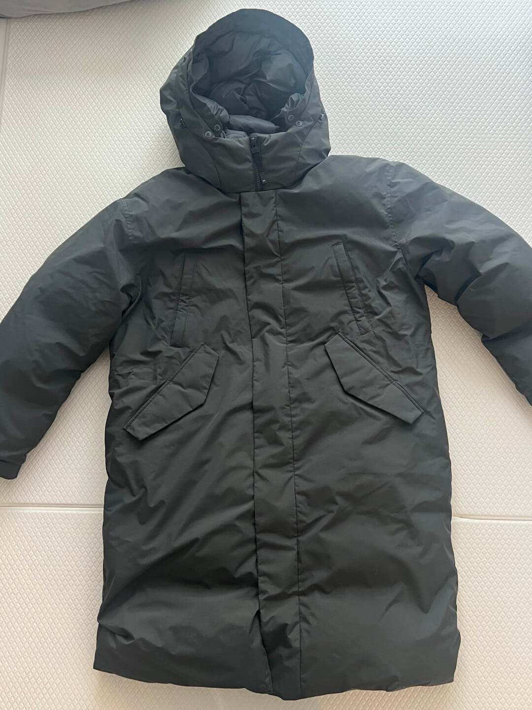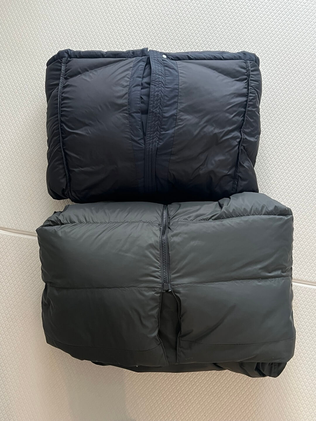 패딩의 지퍼와 모든 주머니를 먼저 닫아주세요. 그래야 형태를 유지하고 내부에 먼지가 들어가는 것을 방지할 수 있습니다.