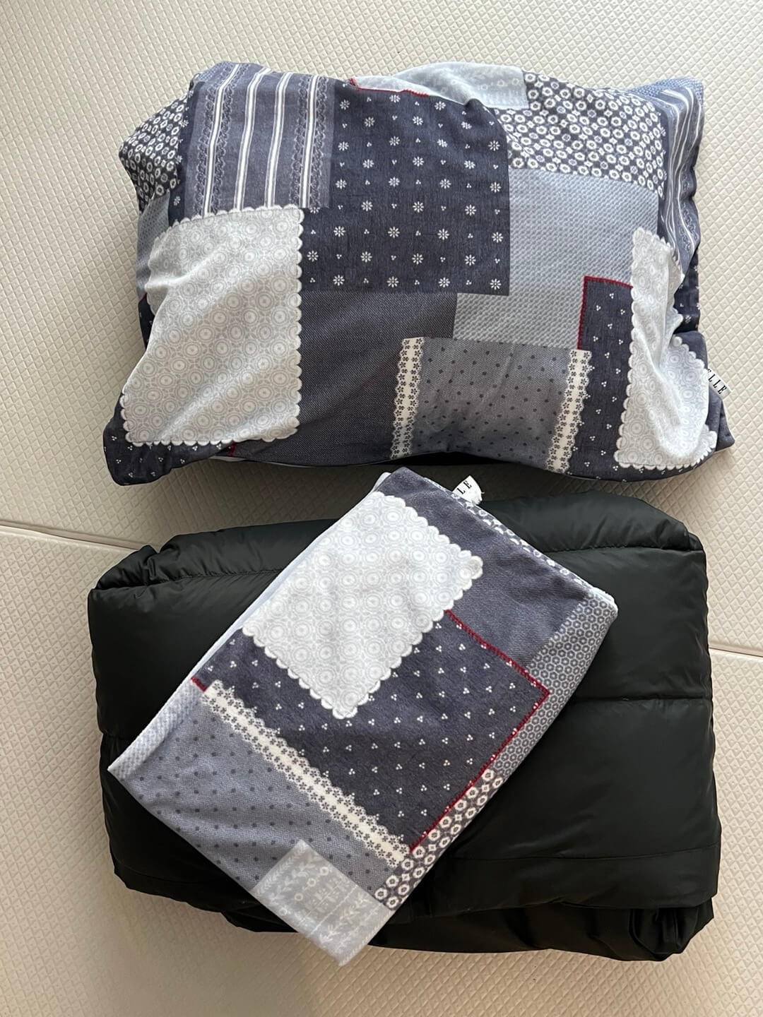 베개 솜 대신 패딩을 넣어두면 옷장이나 침대 위에서도 깔끔하고 보기 좋게 보관이 가능합니다.